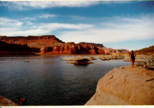 Mary jumping off the Rocks at Lake Powell. |
